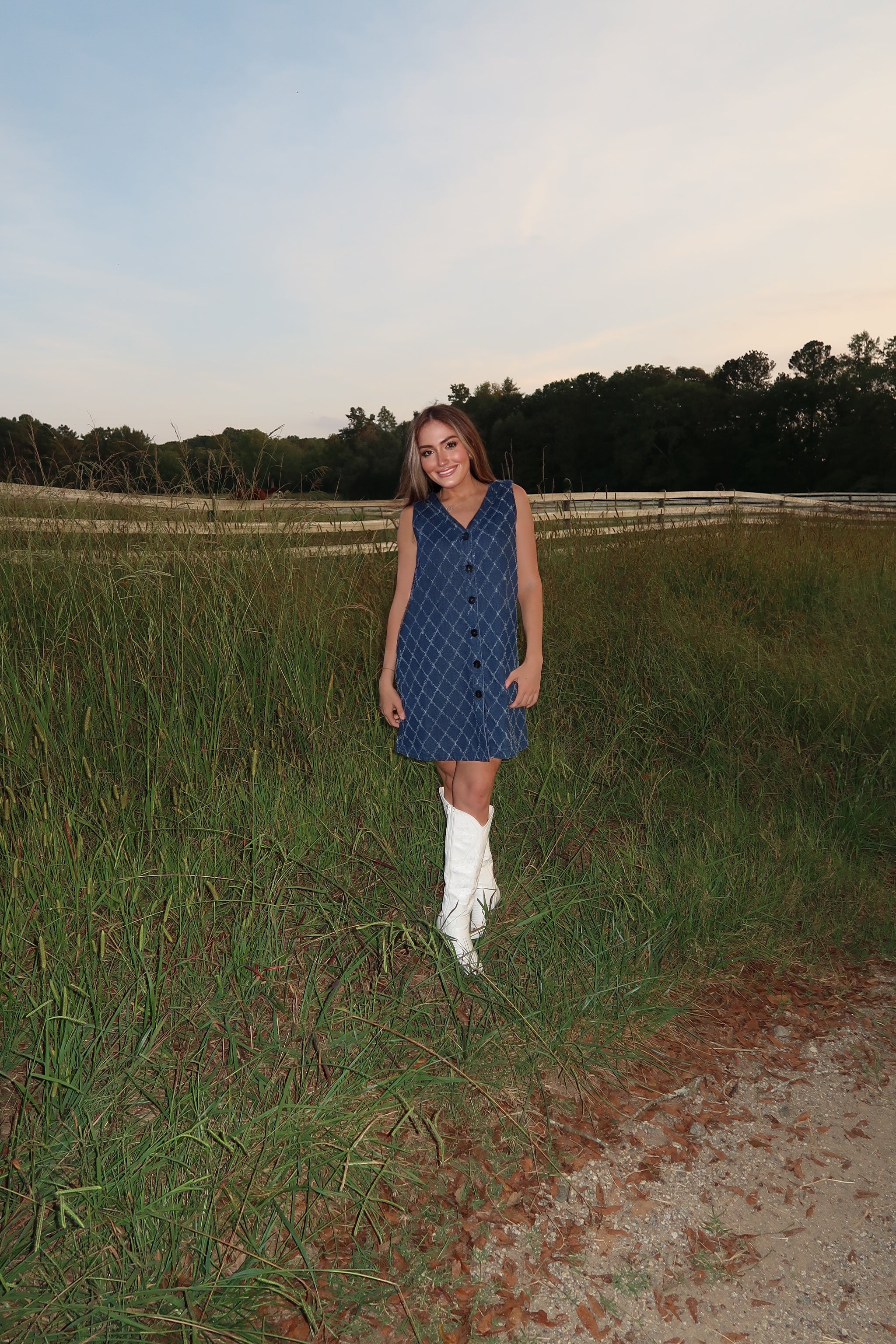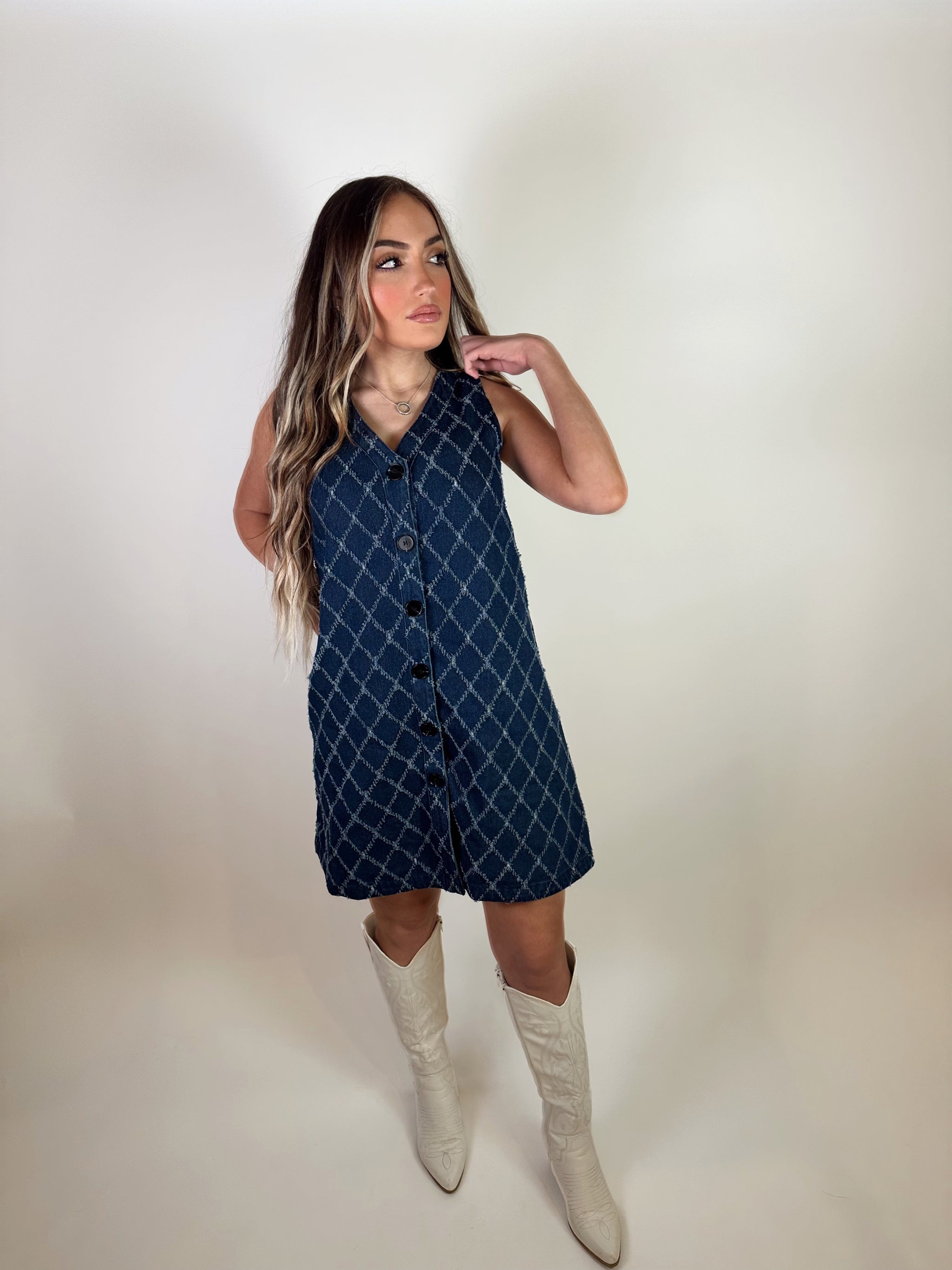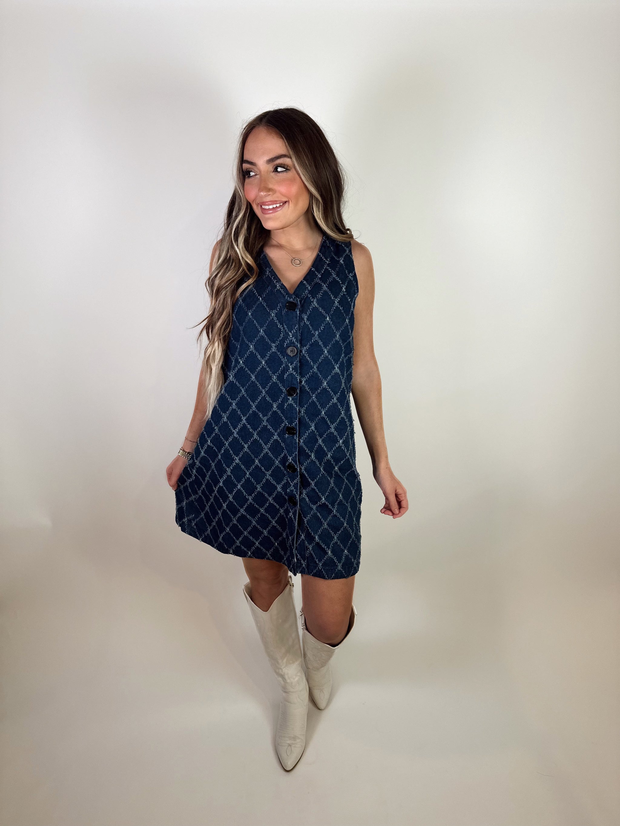 Classic denim with a modern edge—the Auden Dress is made in a dark wash with a flattering tailored fit and functional buttons down the front. Designed as a longer mini that hits just above the knee, it’s the perfect balance of casual and chic. With no zippers or pockets, Auden keeps the look clean and effortless.