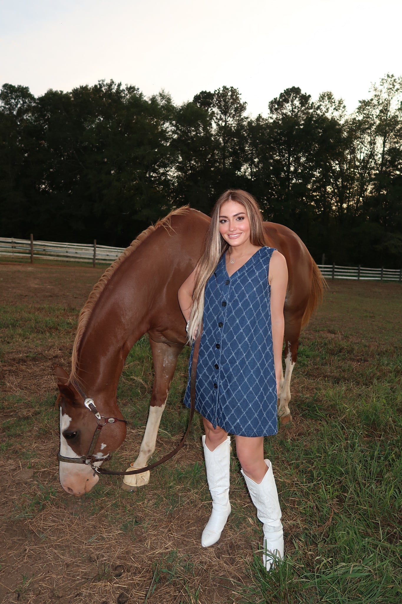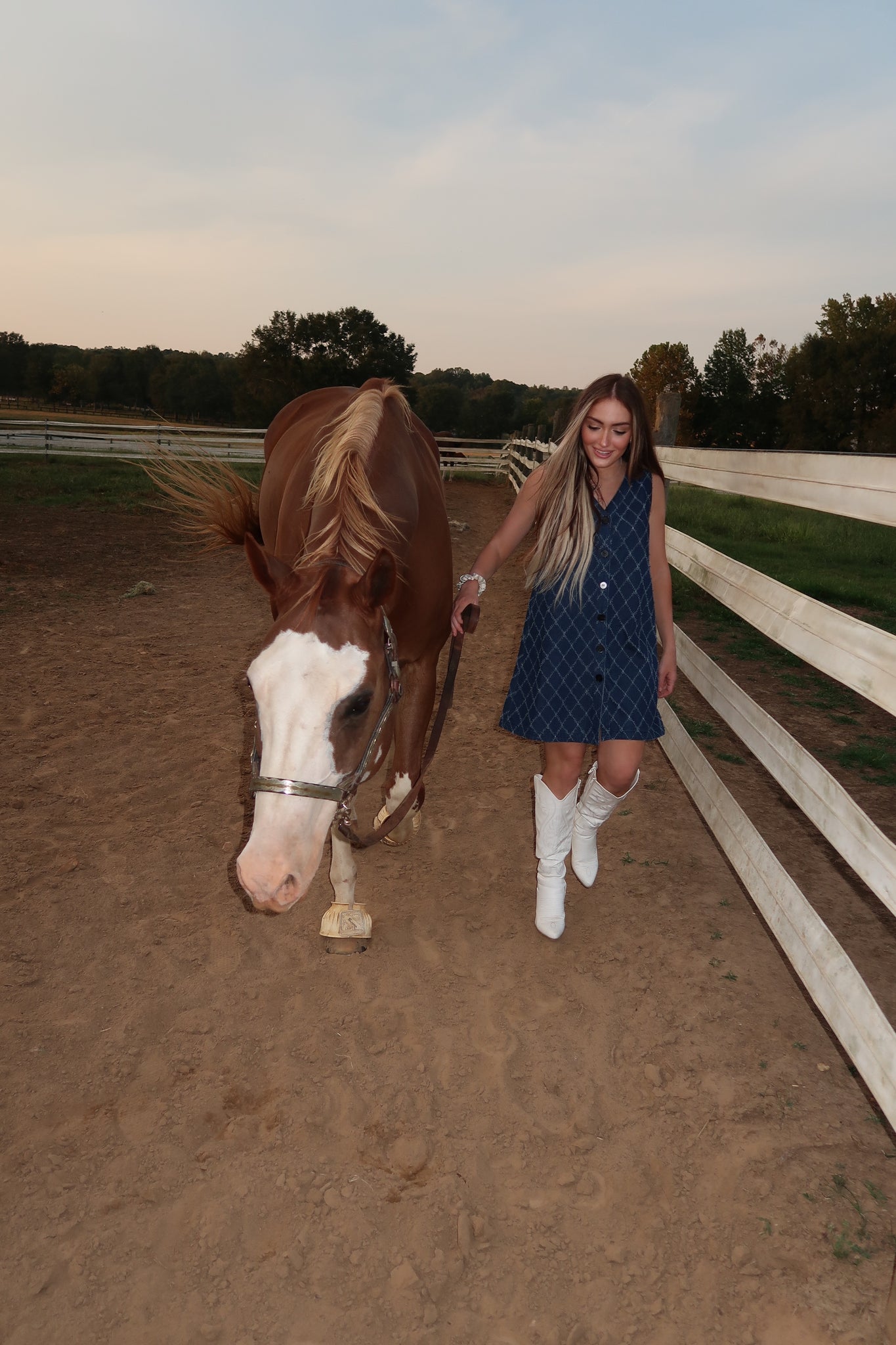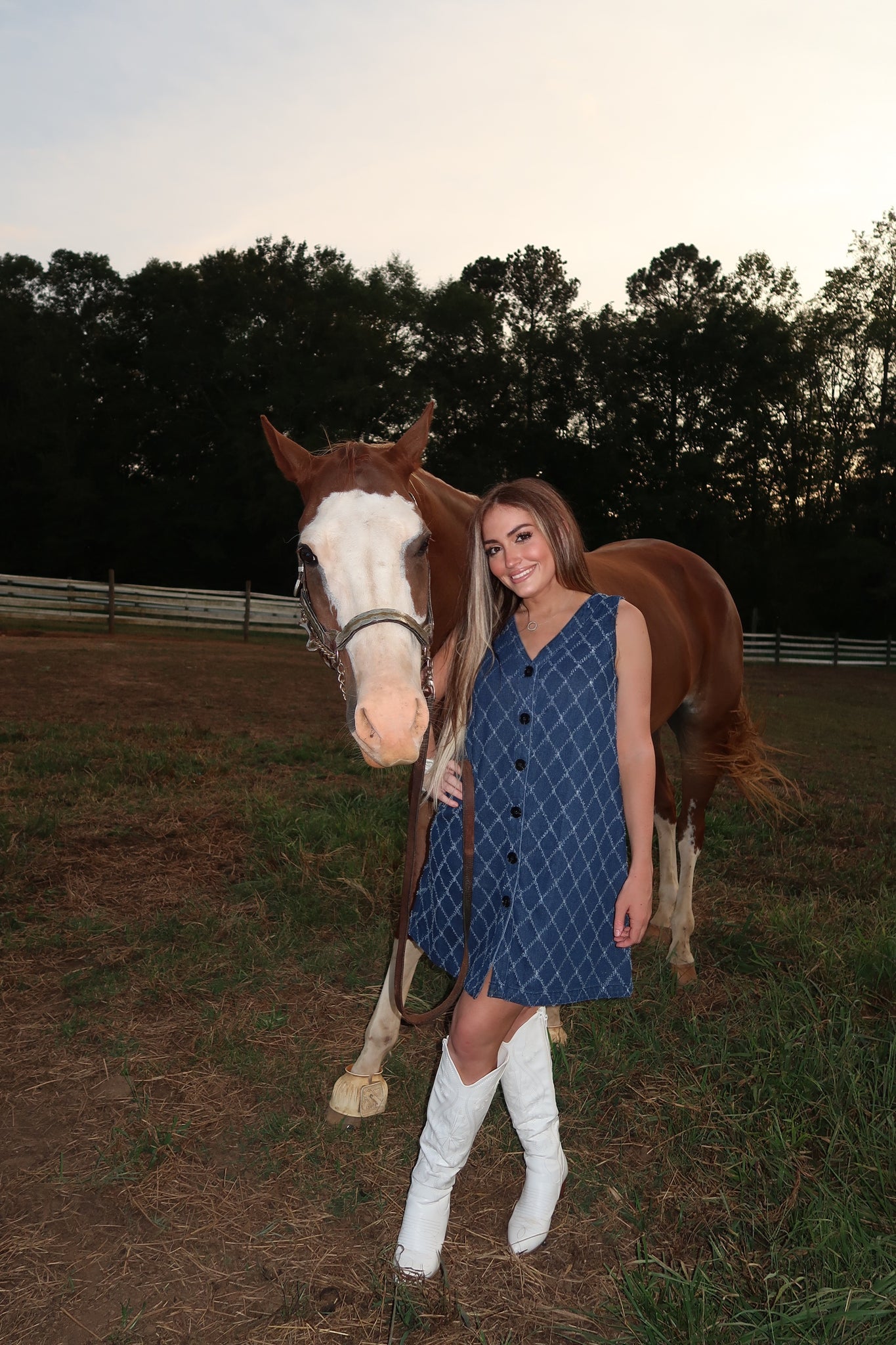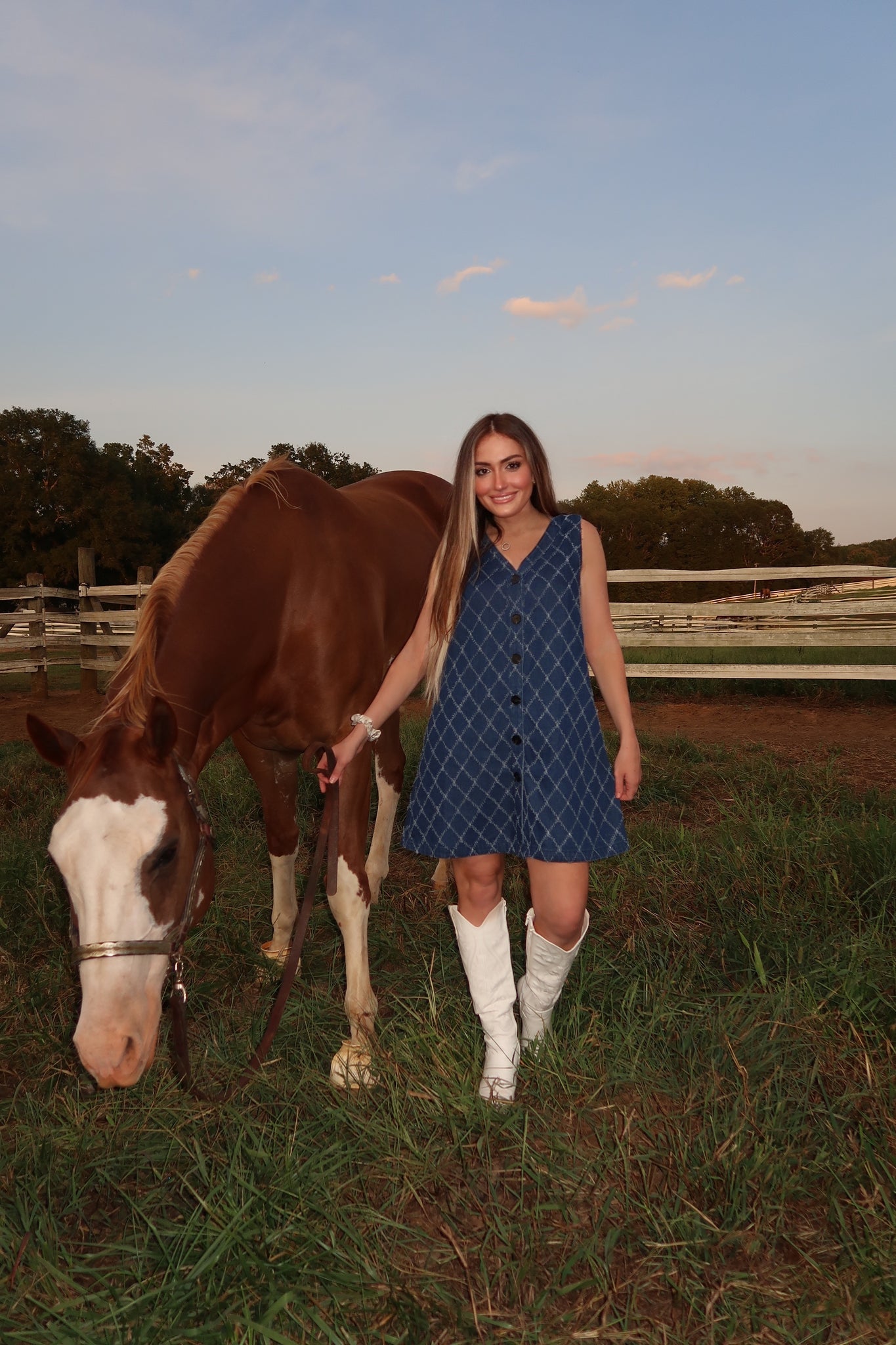 Classic denim with a modern edge—the Auden Dress is made in a dark wash with a flattering tailored fit and functional buttons down the front. Designed as a longer mini that hits just above the knee, it’s the perfect balance of casual and chic. With no zippers or pockets, Auden keeps the look clean and effortless.