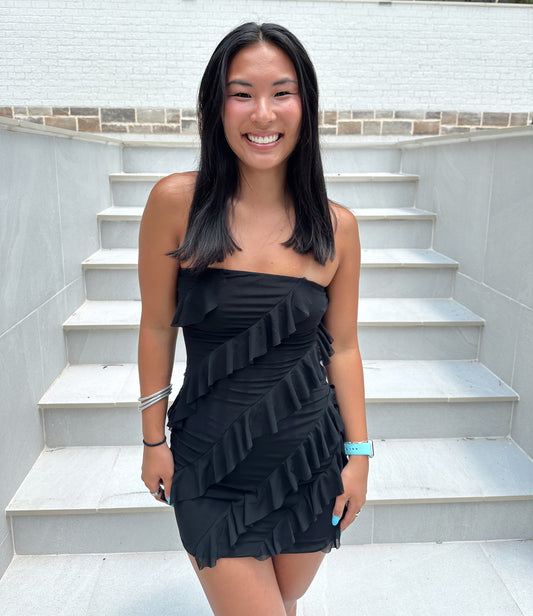 Elle Long Sleeve Wrap Athletic Dress- Black