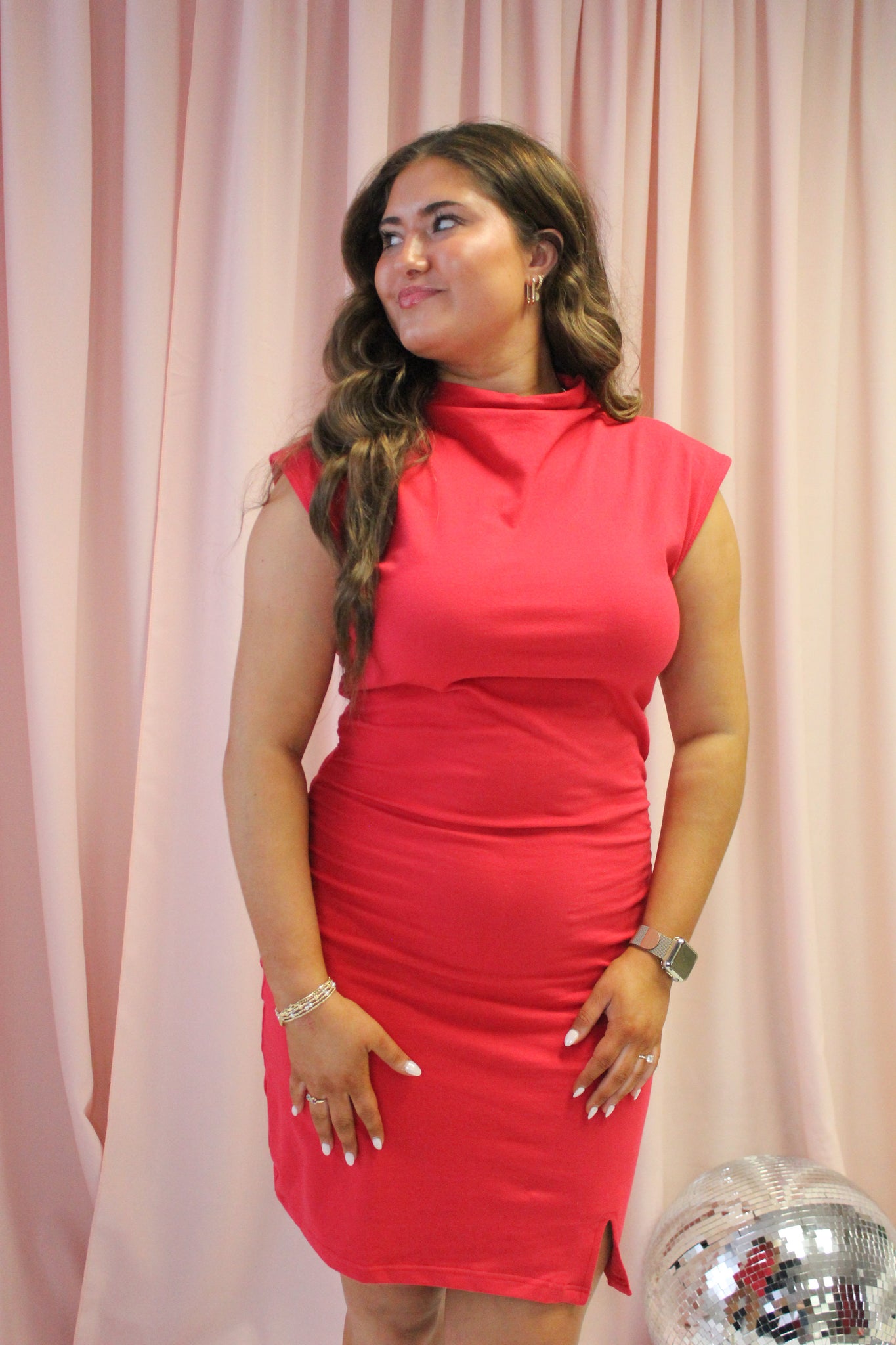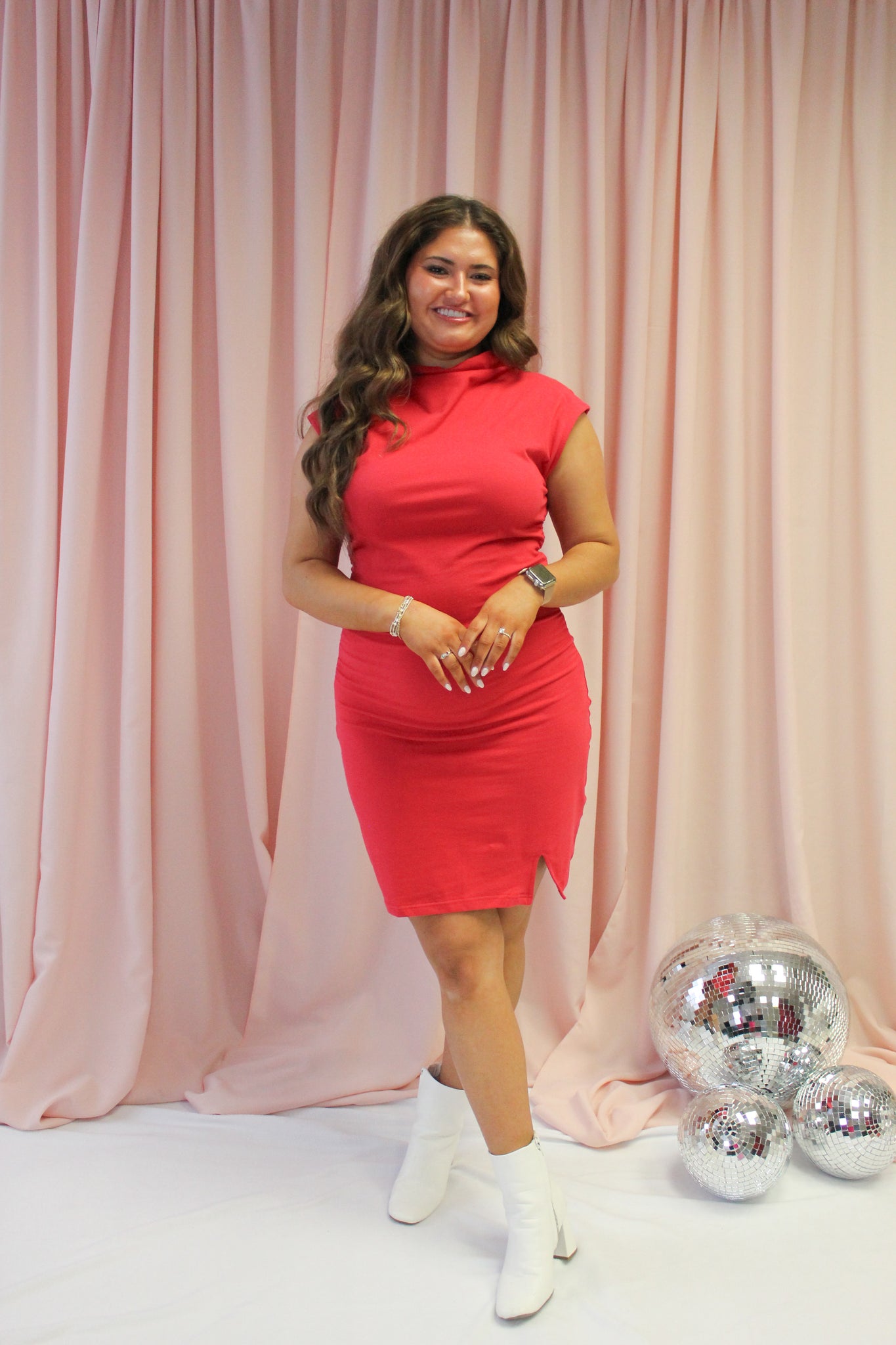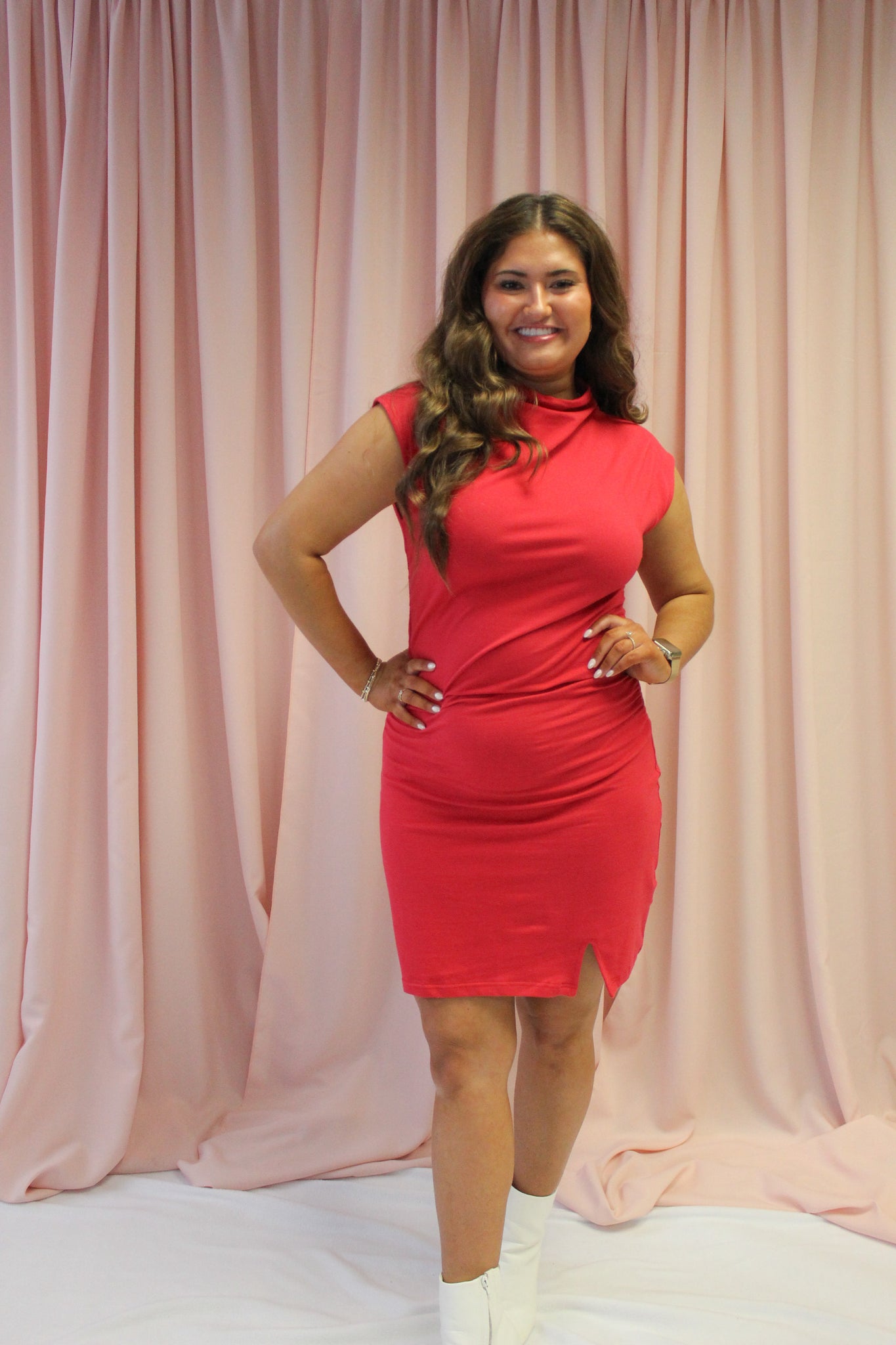Look and feel like royalty in our Queen of Hearts Ruched Dress. The soft fabric is both comfortable and classy, perfect for any occasion. With a mock neck design, this dress can be paired with white booties or your favorite heels for a stunning look. Rule the night in style.