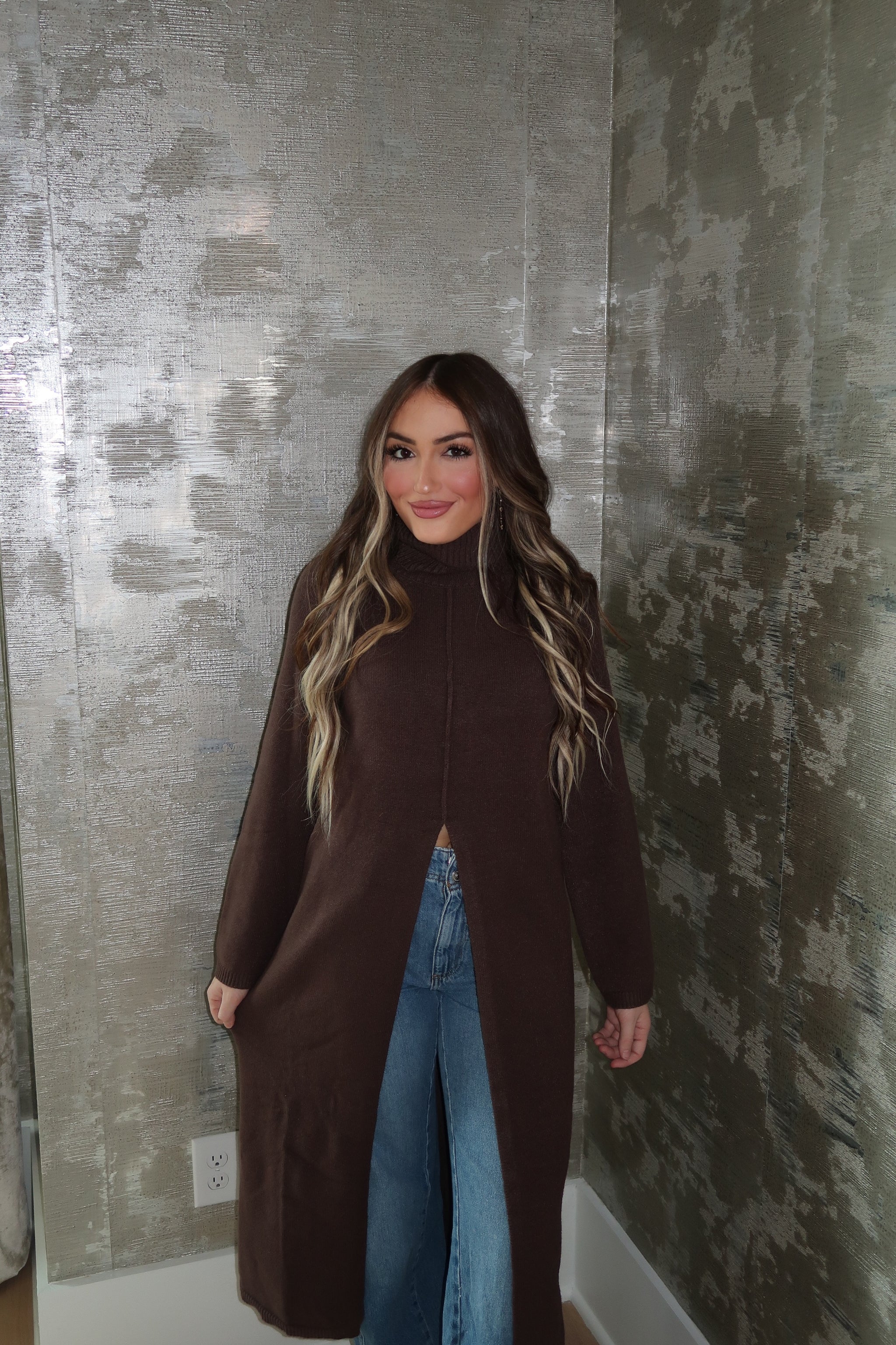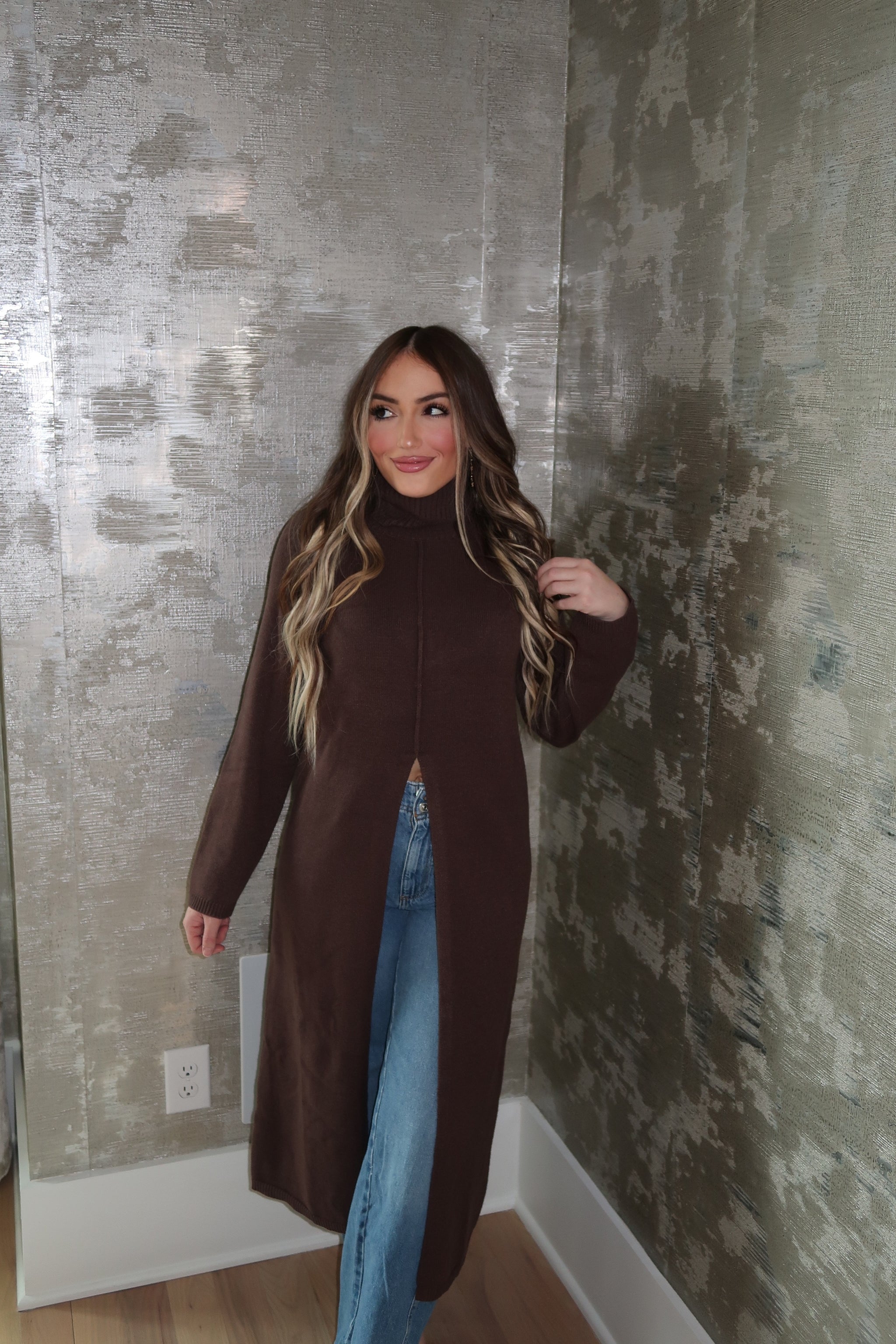 Tommie Turtleneck Tunic Sweater Dress- Brown