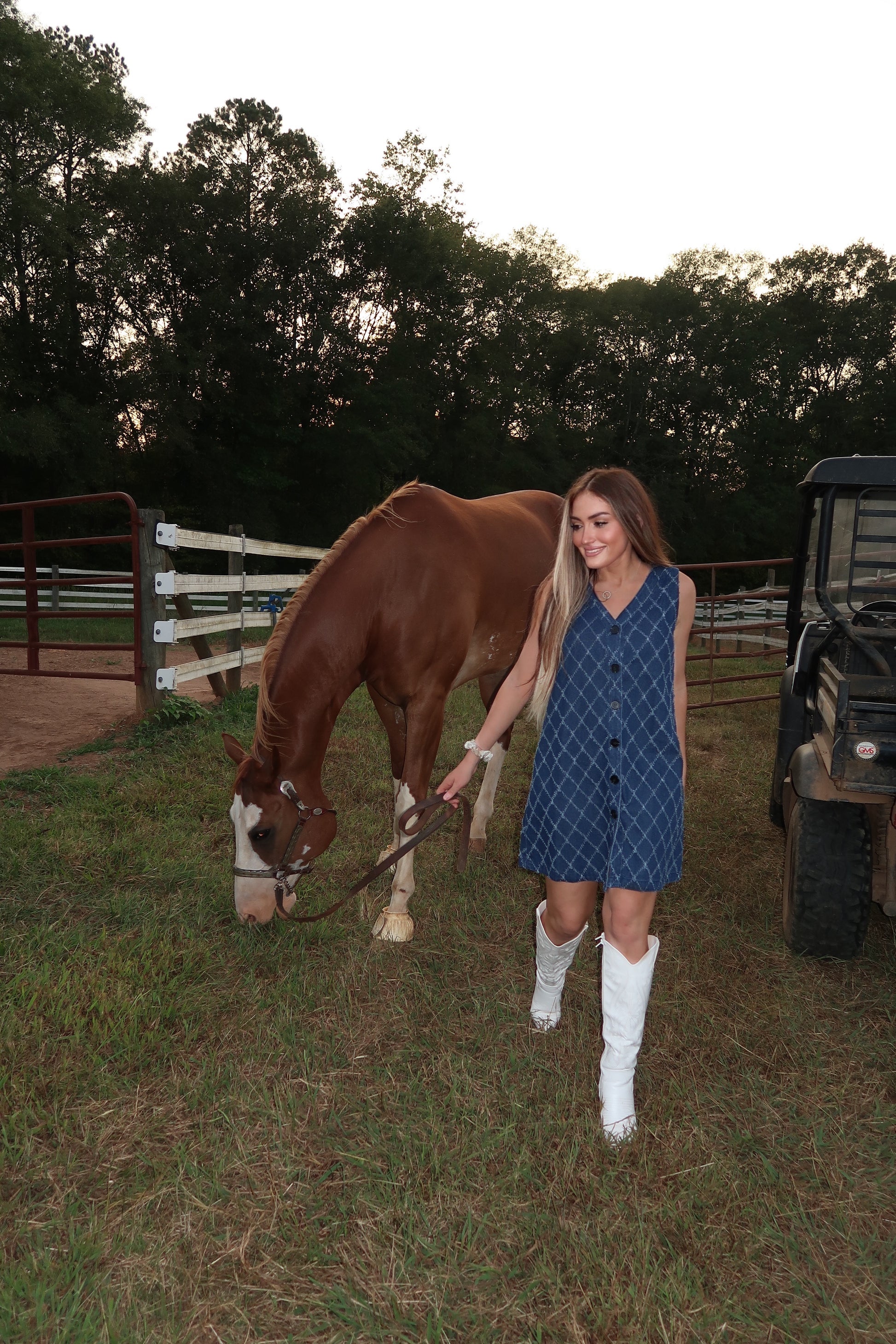 Classic denim with a modern edge—the Auden Dress is made in a dark wash with a flattering tailored fit and functional buttons down the front. Designed as a longer mini that hits just above the knee, it’s the perfect balance of casual and chic. With no zippers or pockets, Auden keeps the look clean and effortless.