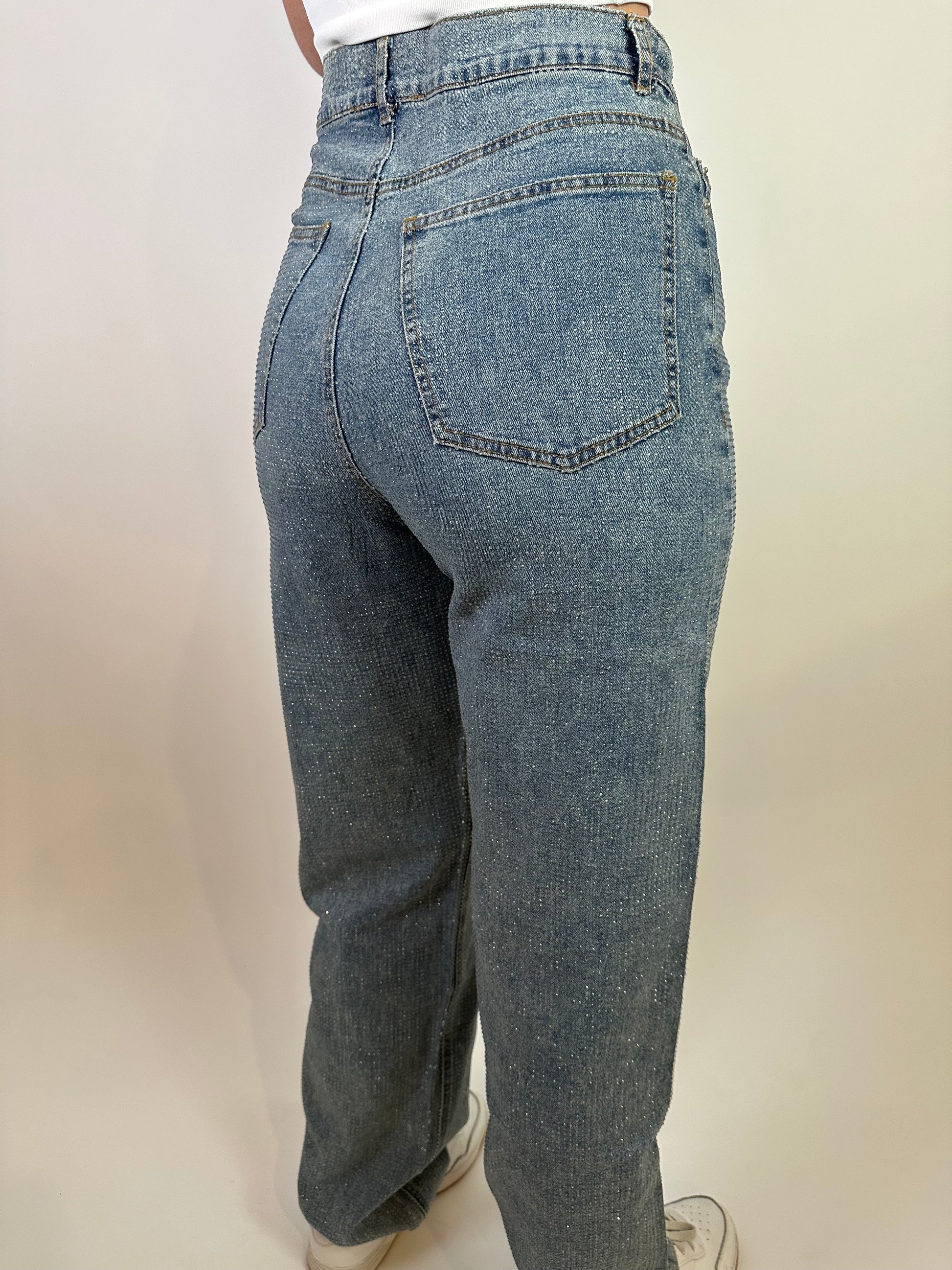 Sparkle meets everyday comfort—the Subtle Flex Jeans give you just the right amount of shine without overdoing it. Designed in classic denim with clear crystal embellishments throughout, these jeans feel elevated yet wearable. Features a high waist style with functional pockets. The straight leg fit makes them super flattering, and the length falls perfectly over sneakers, heels, or boots. Comfy enough for all-day wear, sparkly enough to make a statement.