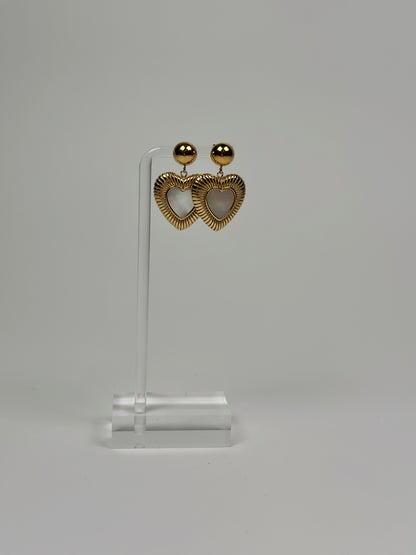 Add a touch of romance and elegance to your outfit with our Ellie Earrings! Crafted with a gold and heart-shaped design, these bold accessories are perfect for any occasion. Elevate your look with these stunning earrings and exude confidence and style. Make a statement and stand out with the Ellie Earrings.