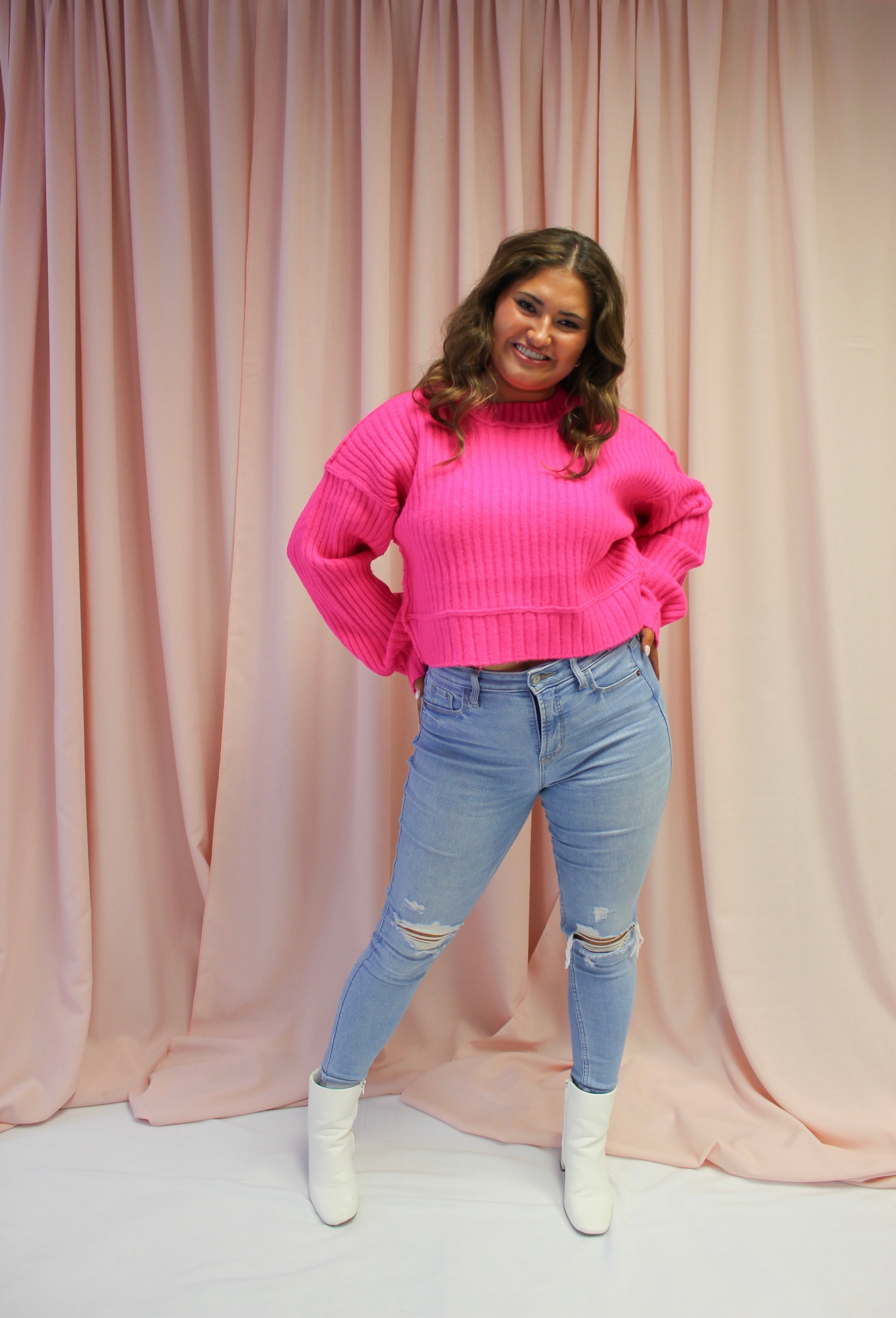 Get ready to fall in love with our Call Me Yours Sweater! Made from super soft material, this trendy sweater in perfect pink will elevate any outfit. Perfect for any occasion, this sweater is a must-have for your wardrobe.