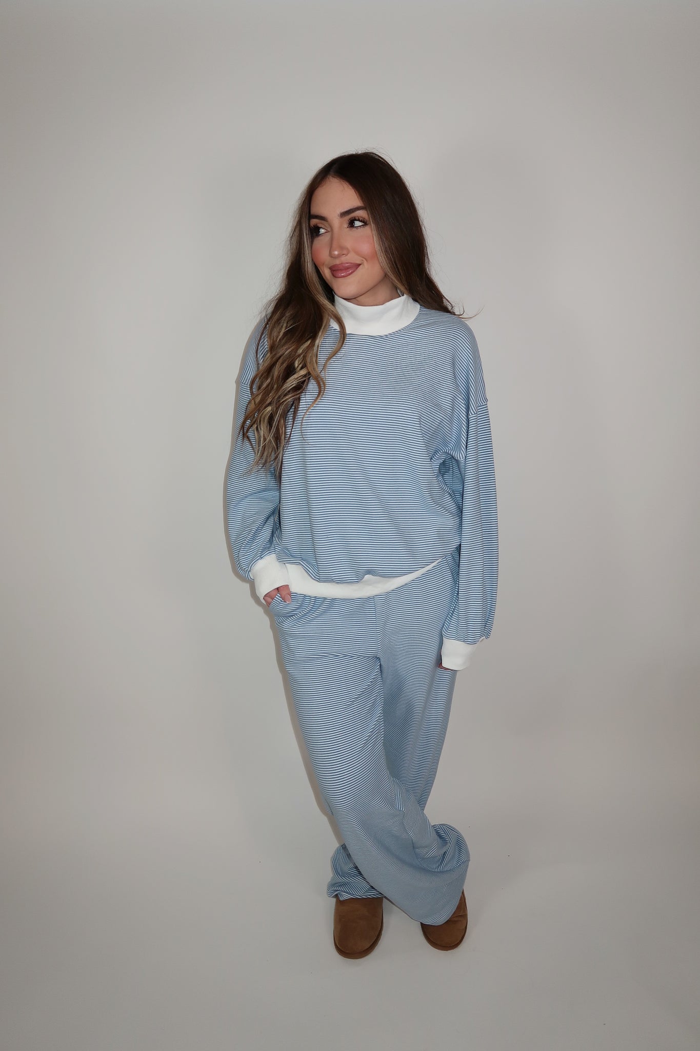Hazel Mockneck Stripe Set- Blue