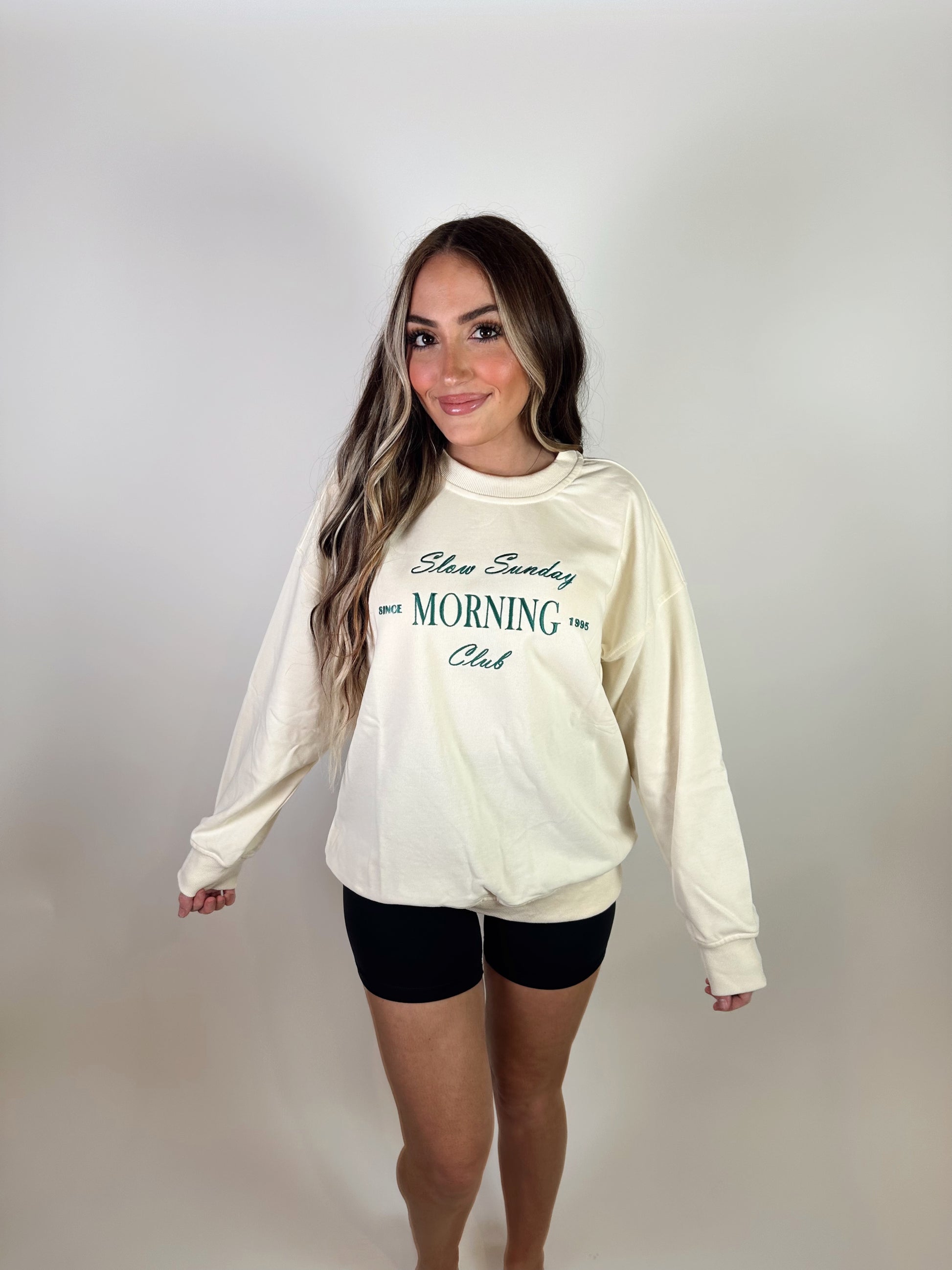 Easy, cozy, and made for your off-duty days—the Slow Sunday Crewneck is the ultimate laid-back essential. In a soft cream shade with embroidered lettering, it’s the piece you’ll reach for every time you want to look cute but feel comfortable. Dress it up with a mini skirt or keep it casual with your favorite joggers—either way, it’s a vibe.
