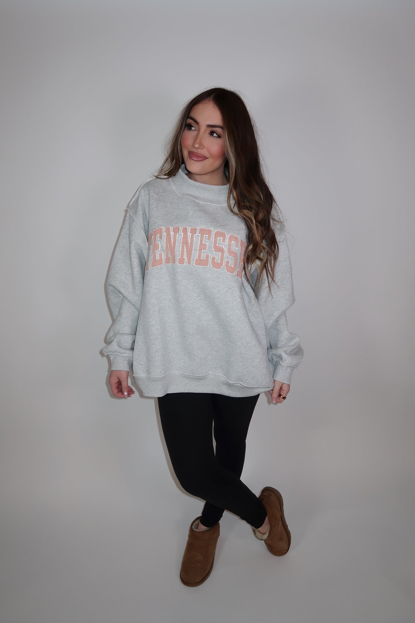 A cozy everyday sweatshirt with a relaxed mock neckline and bold “TENNESSEE” embroidery. Easy, comfortable, and perfect for cooler days.