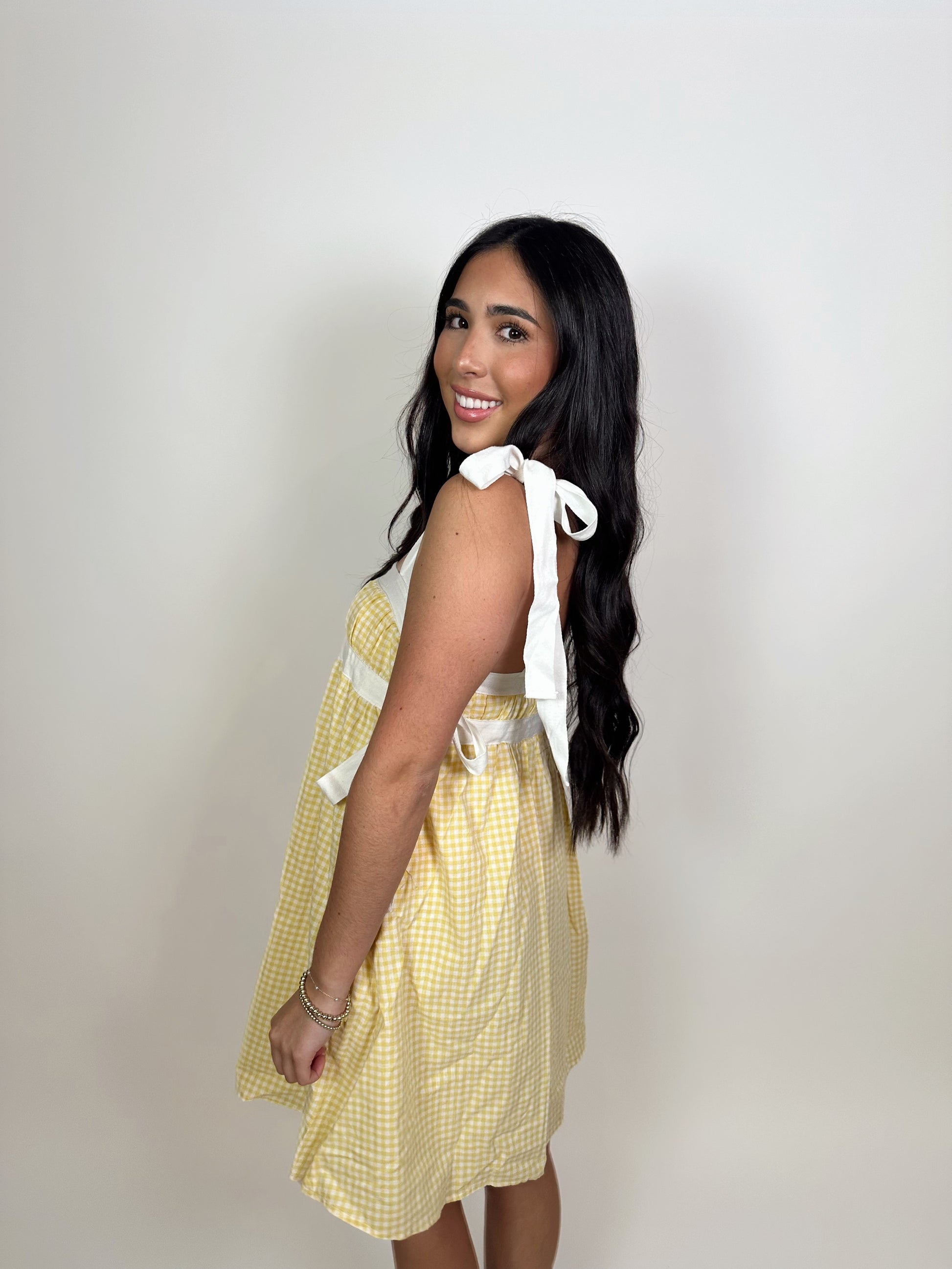The High Tea Babydoll Dress is everything you need for those dreamy spring and summer moments. Designed in a soft yellow gingham pattern, this beauty features adjustable tie straps you can bow to perfection and side ties that cinch for the perfect fit. Flowy, flirty, and effortlessly cute—pair it with your favorite sandals for a picnic, brunch, or golden-hour stroll.